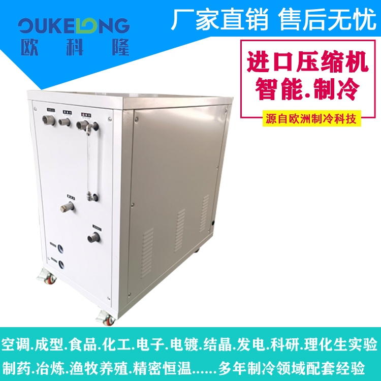 適用場景廣泛,可用于理化生實驗室、高校、電子、電鍍、食品等行業(yè)。歐科隆還提供整機(jī)免費(fèi)保修一年、終身售后服務(wù),配送方式有工廠送貨上門和物流送貨上門,交期方面,有庫存配件1 - 3日即可交貨。歐科隆3匹水冷箱式冷水機(jī)組以其卓越性能和優(yōu)質(zhì)服務(wù),為各行業(yè)的制冷需求提供可靠保障。