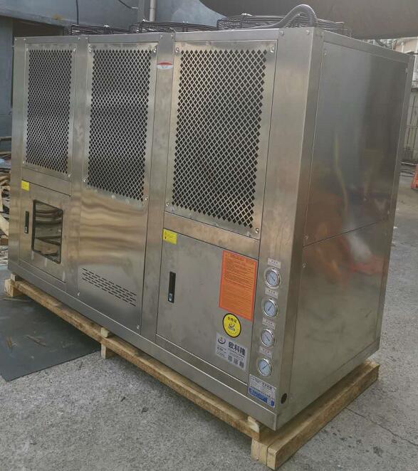 歐科隆制冷榮幸服務(wù)于某科研單位飛機(jī)造科研項目,由于包含機(jī)密信息,故而不能透露項目信息。此冷水機(jī)組304不銹鋼系統(tǒng),和304不銹鋼外殼體。設(shè)計使用壽命20年。核心配件均為一線品牌,操作系統(tǒng)為PLC可編程控制器。